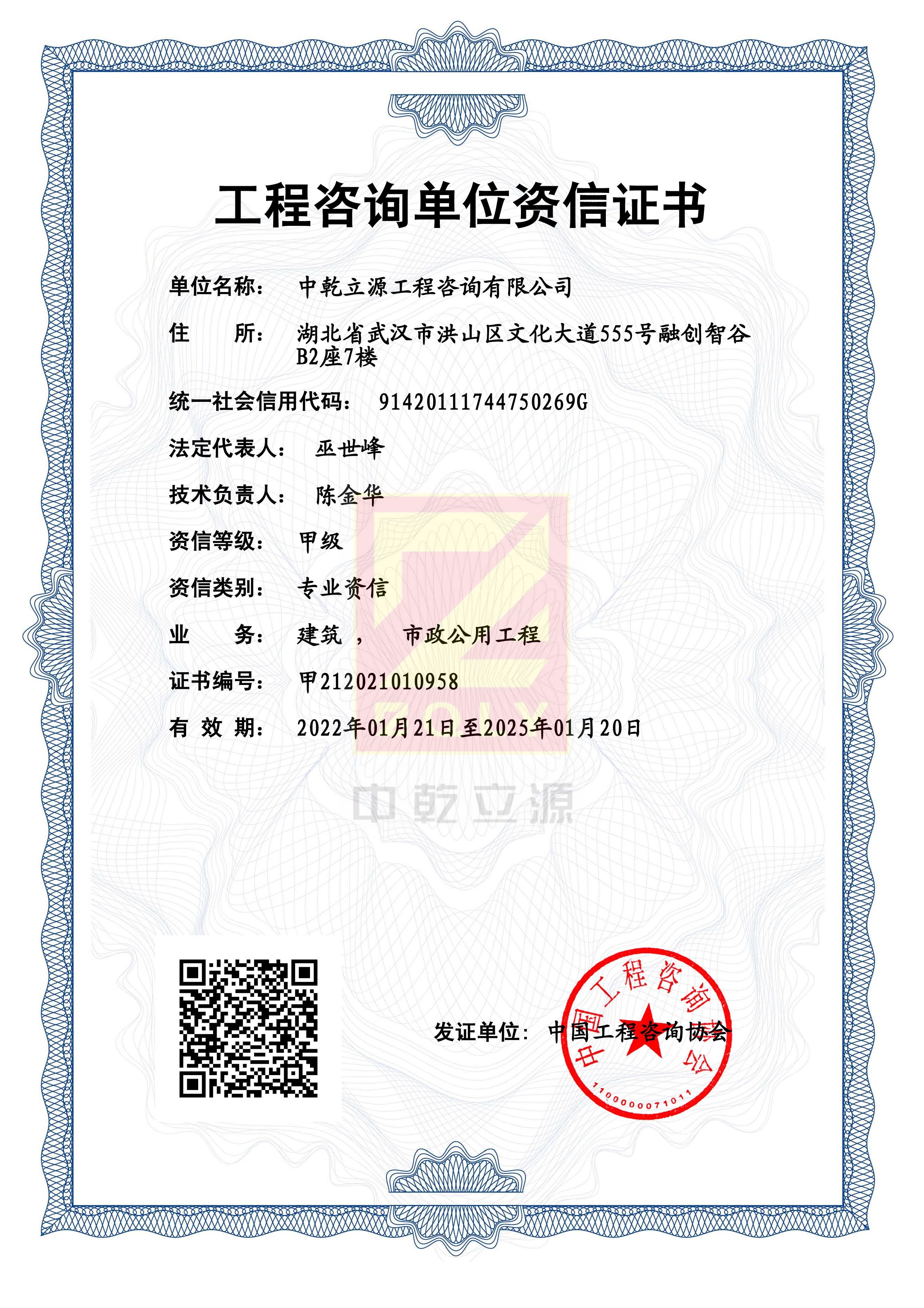 工程咨詢單位甲級資格證書