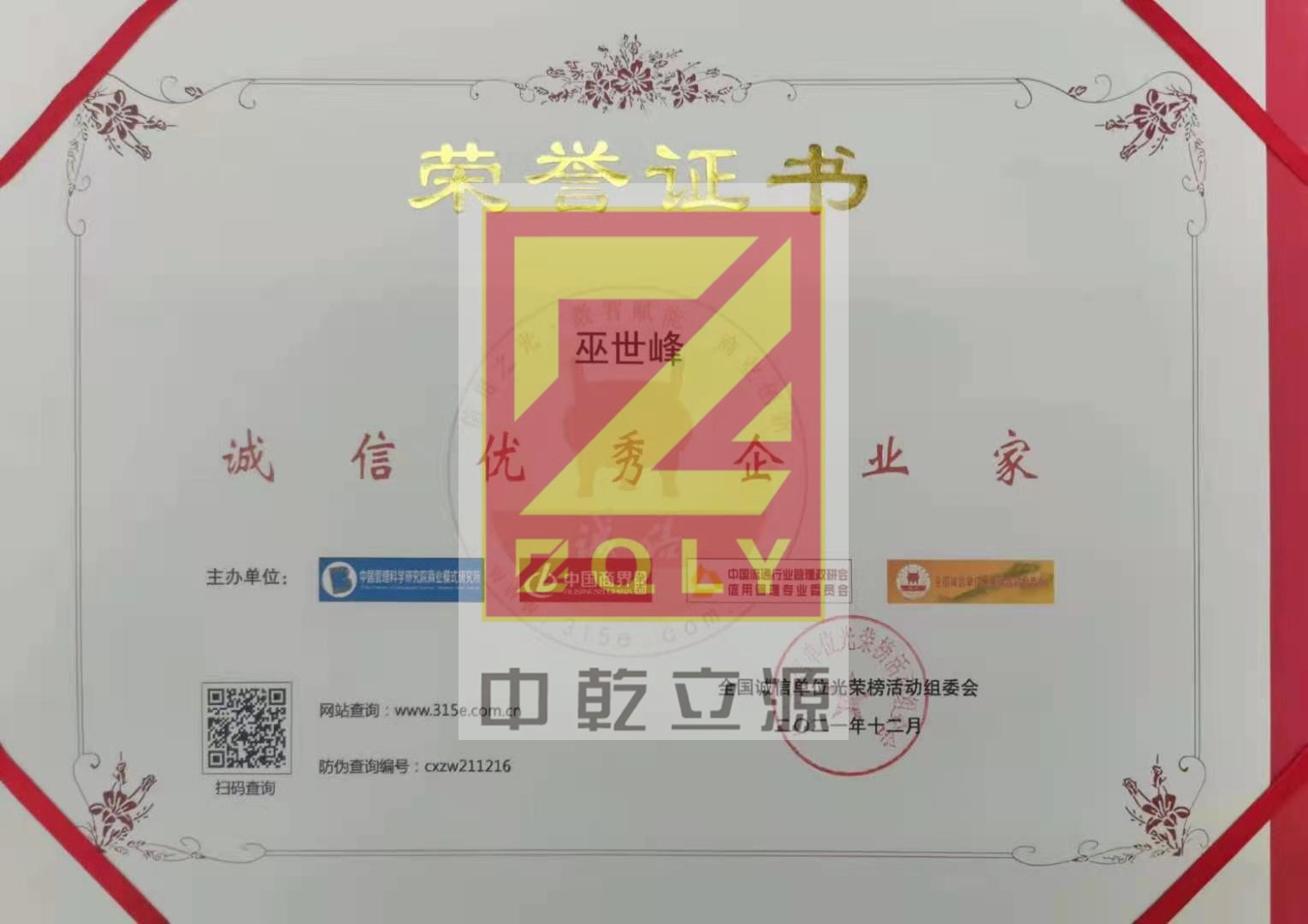 【2021】誠信優(yōu)秀企業(yè)家