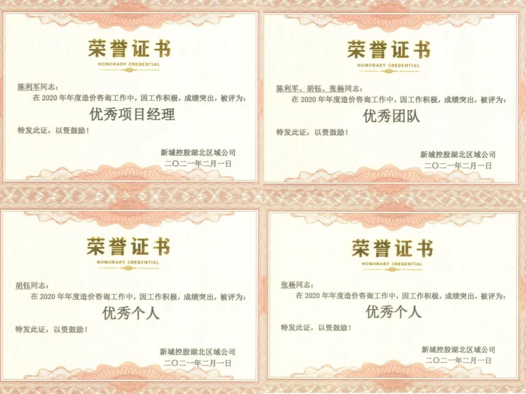 新年傳喜訊,奮進正當時。新城·璞樾門第項目團隊傳來好消息!新城控股授予我司“2020年度優(yōu)秀團隊”、我司員工“2020年度優(yōu)秀項目經(jīng)理”、“2020年度優(yōu)秀個人”等榮譽稱號!作為新城控股優(yōu)質(zhì)的合作伙伴,中乾立源憑借對全過程咨詢項目豐富的服務經(jīng)驗、數(shù)據(jù)指標以及項目咨詢團隊的用心服務、高效協(xié)作,積極配合業(yè)主開展各項項目管理工作。該項目為我司重點全過程咨詢項目之一,服務內(nèi)容涵蓋整個項目的設計階段、招標階段、施工階段、竣工結(jié)算階段。憑借我司多年房地產(chǎn)項目咨詢經(jīng)驗,為項目提供了數(shù)據(jù)分析與對標、造價指標分析等相關服務,從項目成本管控角度提供咨詢意見,協(xié)助委托方進行設計優(yōu)化及方案比選。公司主動策劃、提前部署,在最快的時間內(nèi)為項目順利實施提供咨詢方案,前臺咨詢小組克服困難,堅持對項目現(xiàn)場進行全過程跟蹤、全方位收集資料;公司后臺組織專業(yè)小組梳理相關政策與文件,為項目后期結(jié)算等相關工作展開奠定了良好的基礎,助力以工程成本管控為核心的全過程咨詢項目良好開展。中乾立源將全力以赴,竭力為項目提供專業(yè)服務,穩(wěn)步提升專業(yè)水平,持續(xù)改進成果質(zhì)量,不斷增強服務意識,為客戶交上更加滿意的答卷。更為實現(xiàn)項目投資價值的最大化而不懈努力,用實際行動為行業(yè)建設發(fā)展貢獻力量。