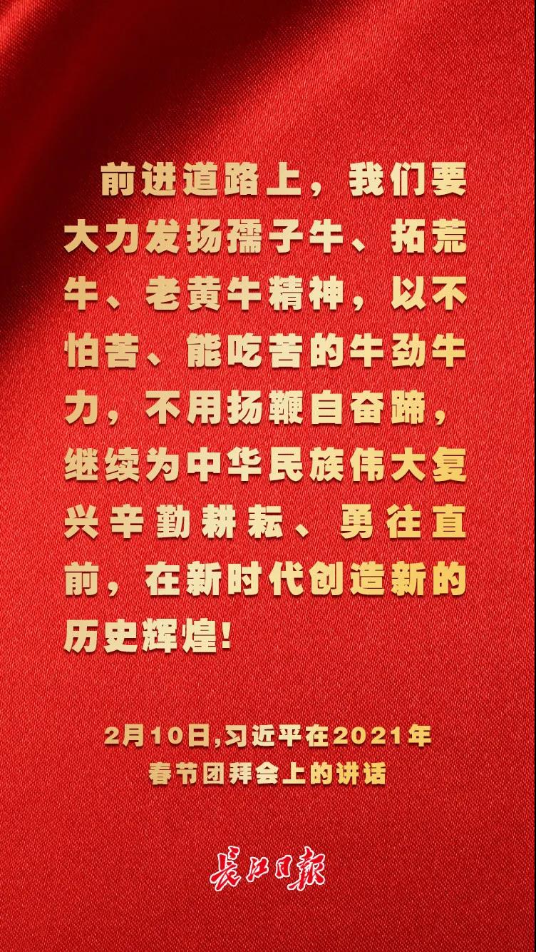 春光中,一年時光剛剛開始。我們在一起共同戰(zhàn)勝困難,更加懂得時間的力量。在中華文化里,牛是勤勞、奉獻、奮進、力量的象征。讓我們一起做無私奉獻的孺子牛,做攻堅克難的拓荒牛,做艱苦奮斗的老黃牛,以“牛氣沖天”的強勁態(tài)勢開啟全新的奔跑,為建設(shè)現(xiàn)代化大武漢辛勤耕耘、勇往直前。