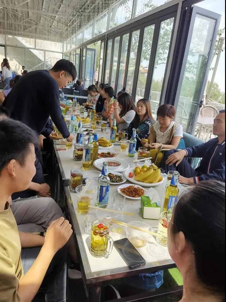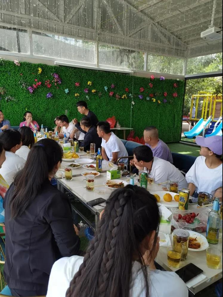轉(zhuǎn)眼時間已至用餐時間,大部隊浩浩蕩蕩的走向今日的另一個活動點,蘭山公園田園山莊農(nóng)家樂,全體人員落座后,大家吃到了有老板親自操刀下廚做好的柴火雞,席間,公司總經(jīng)理閆彥舉杯歡迎新員工的加入,并表達了對每位員工寄予的厚望,努力做好本職工作,為公司的發(fā)展添磚加瓦。