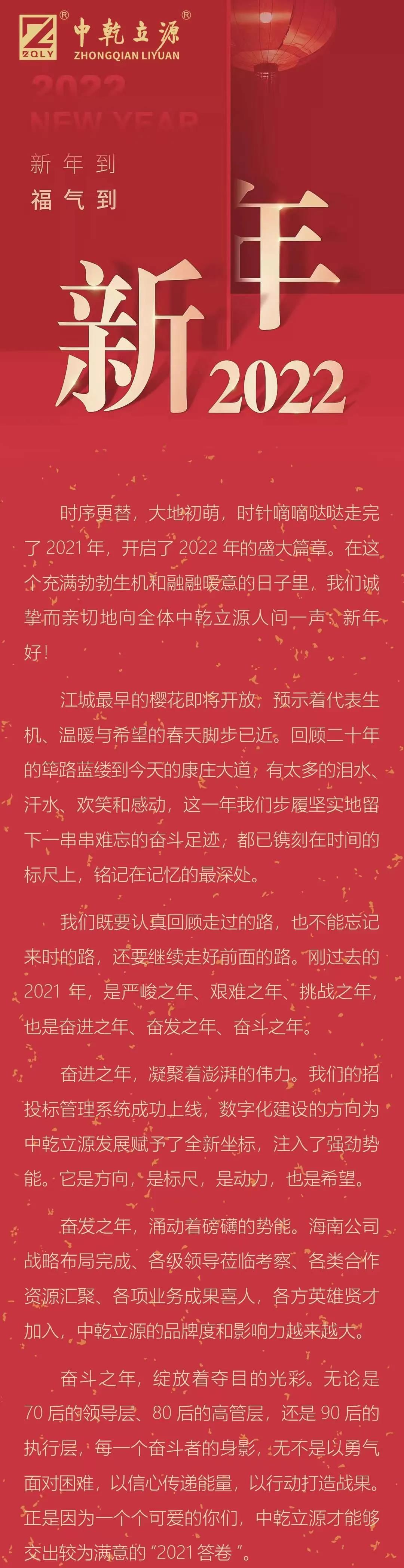 中乾立源二O二二年新春致辭