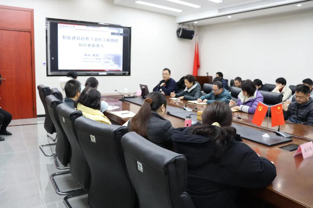 為進(jìn)一步幫助造價(jià)行業(yè)從業(yè)人員應(yīng)對(duì)造價(jià)變革新的挑戰(zhàn),拓寬業(yè)務(wù)思路,提升業(yè)務(wù)能力,2月17日上午,我司舉辦《智能建造趨勢(shì)下造價(jià)工程師的知識(shí)更新》講座,邀請(qǐng)武漢理工大學(xué)陳偉教授做專(zhuān)題分享。本次講座通過(guò)線下講解、線上同步直播的方式進(jìn)行。董事長(zhǎng)巫世峰及部分員工線下聆聽(tīng)、全國(guó)二十多家分公司通過(guò)線上直播參與學(xué)習(xí),共計(jì)三百多人次參加此次培訓(xùn)。