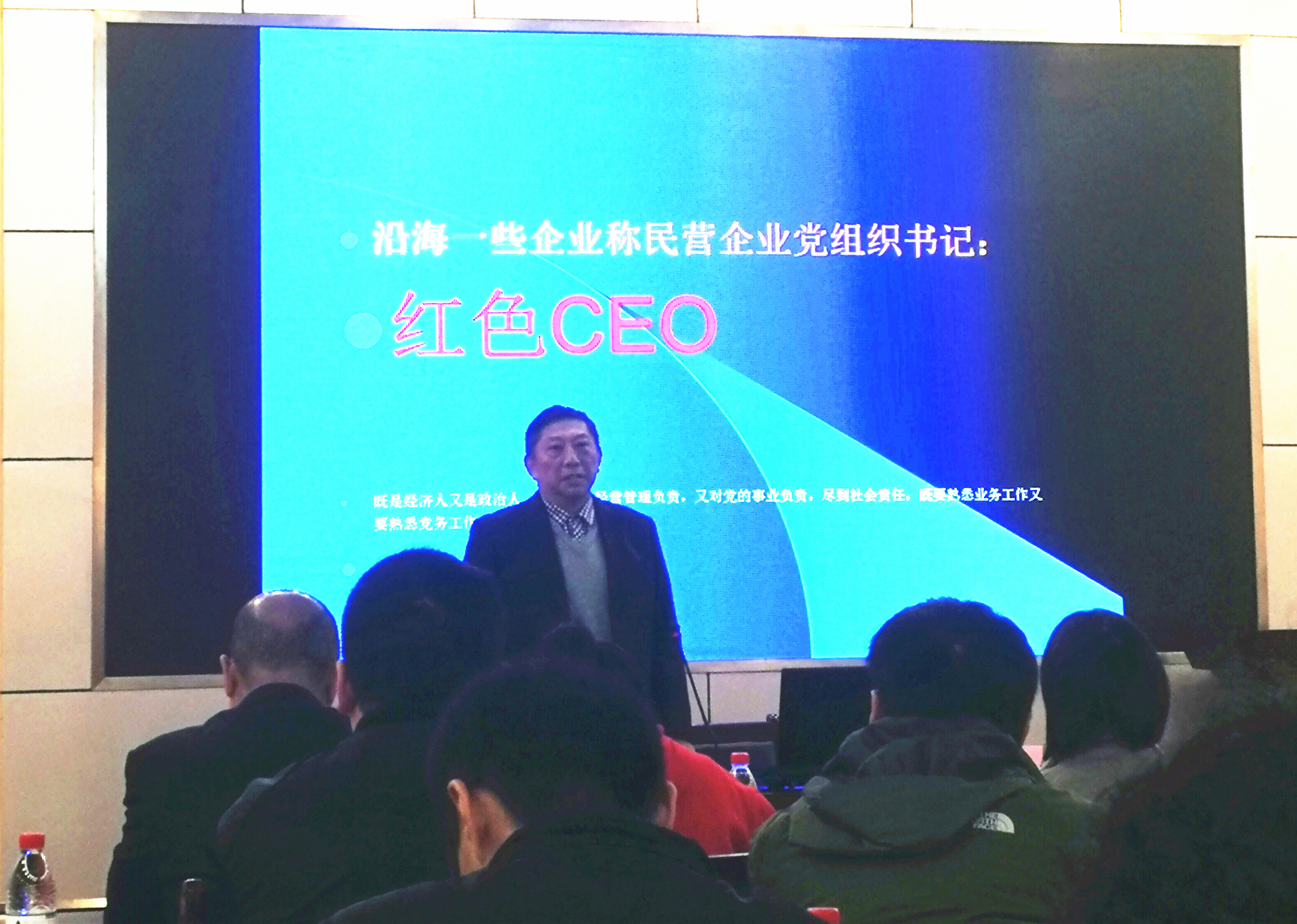 中共湖北省委黨校徐仲韜教授主要講授《兩新組織黨建工作》以及黨與企業(yè)“兩個覆蓋”、“兩支隊(duì)伍”、“兩個作用”的相互關(guān)系。讓我們感受到國家毫不動搖鼓勵、支持和引導(dǎo)非公有制經(jīng)濟(jì)的態(tài)度和決心,讓我們學(xué)習(xí)找準(zhǔn)黨組織與新經(jīng)濟(jì)組織發(fā)展的結(jié)合點(diǎn),通過目標(biāo)、利益、資源、人才、管理等方面使企業(yè)發(fā)揚(yáng)壯大。