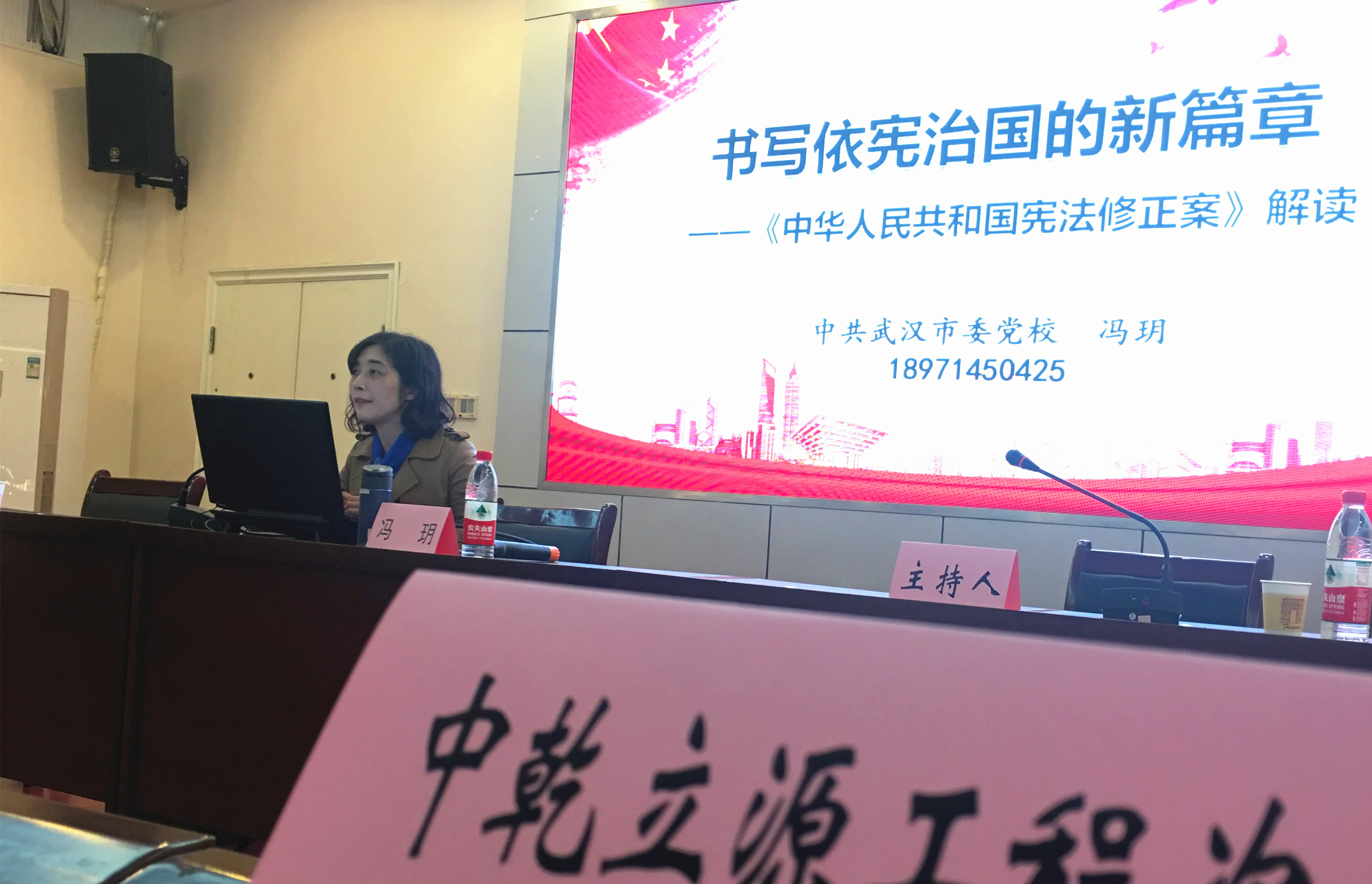 中共武漢市委黨校馮玥教授為我們詳細(xì)解讀《中華人民共和國憲法修正案》,讓大家了解憲法的編寫歷程,學(xué)習(xí)習(xí)近平新時代中國特色社會主義思想的“八個明確”、“十四個堅(jiān)持”、“五大新發(fā)展理念”,以及“保障私權(quán)、規(guī)范公權(quán)”的憲法精神。