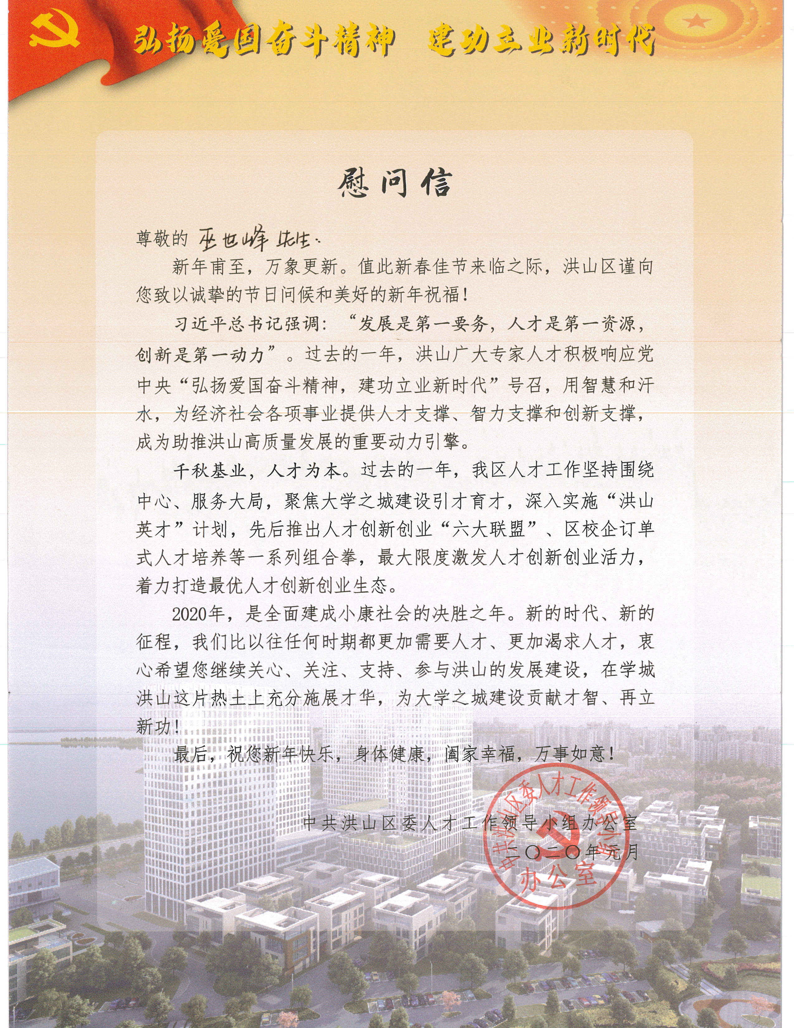 中共洪山區(qū)委——慰問信