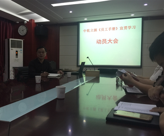 2016年5月18日下午5點(diǎn),中乾立源《員工手冊(cè)》宣貫學(xué)習(xí)動(dòng)員大會(huì)在會(huì)議室召開,本次大會(huì)由馮德雄博士主持,馮博士在會(huì)中介紹此次活動(dòng)的意義及要求,以及考核的時(shí)間及地點(diǎn)。