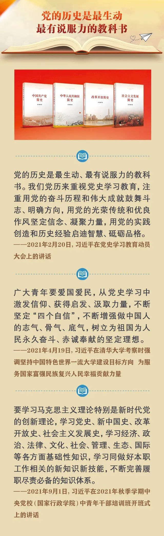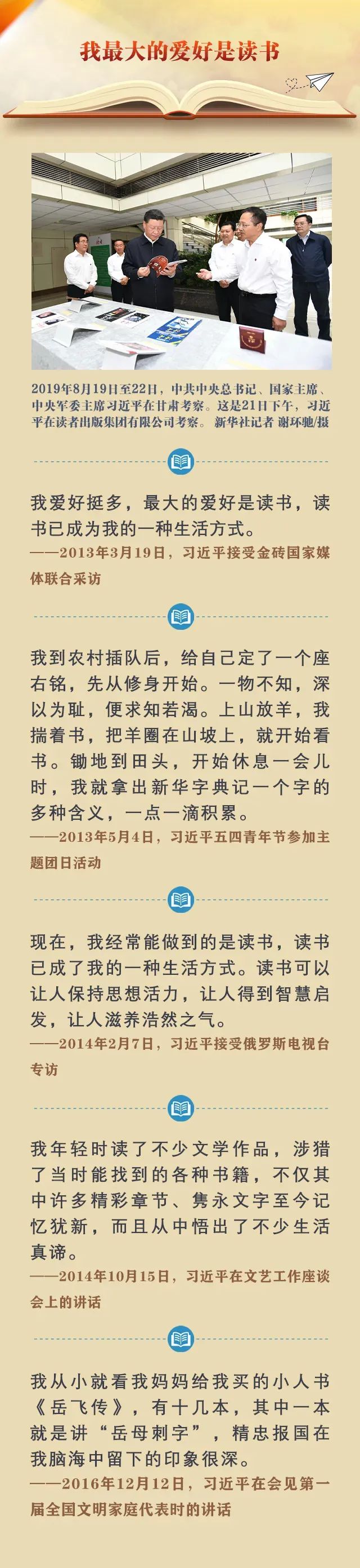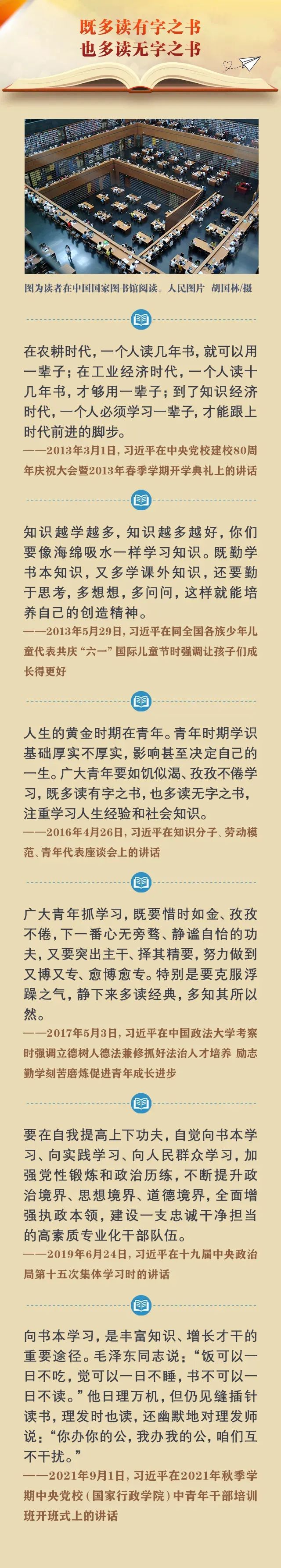 4月23日,是第27個世界讀書日。習(xí)近平總書記酷愛讀書,黨的十八大以來,總書記在國內(nèi)外不同場合,多次講述他與書結(jié)下的“不解之緣”,倡導(dǎo)全社會愛讀書、讀好書、善讀書,真正把讀書當成一種生活態(tài)度、一種工作責(zé)任、一種精神追求、一種境界要求。一起來學(xué)習(xí)總書記的諄諄教誨。