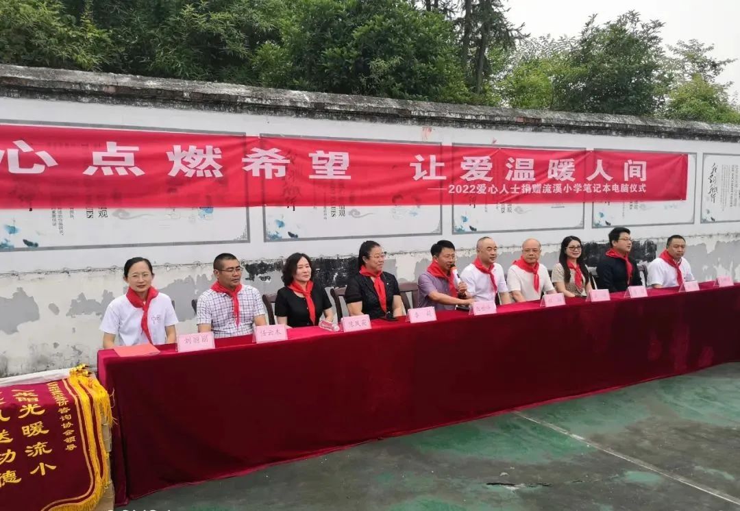 隨后武漢市政協(xié)委員、民建會員,洪山區(qū)政協(xié)委員,中乾立源董事長巫世峰致開場辭,捐贈儀式正式開始,愛心人士代表程征先生、李莉女士向流溪小學(xué)捐贈筆記本電腦,流溪小學(xué)校長劉麗麗、總務(wù)主任樊雄剛代表流溪小學(xué)接受捐贈。最后劉校長向各位來賓致答謝詞,對愛心人士的到來表示熱烈的歡迎和衷心的感謝并向愛心單位贈送錦旗。