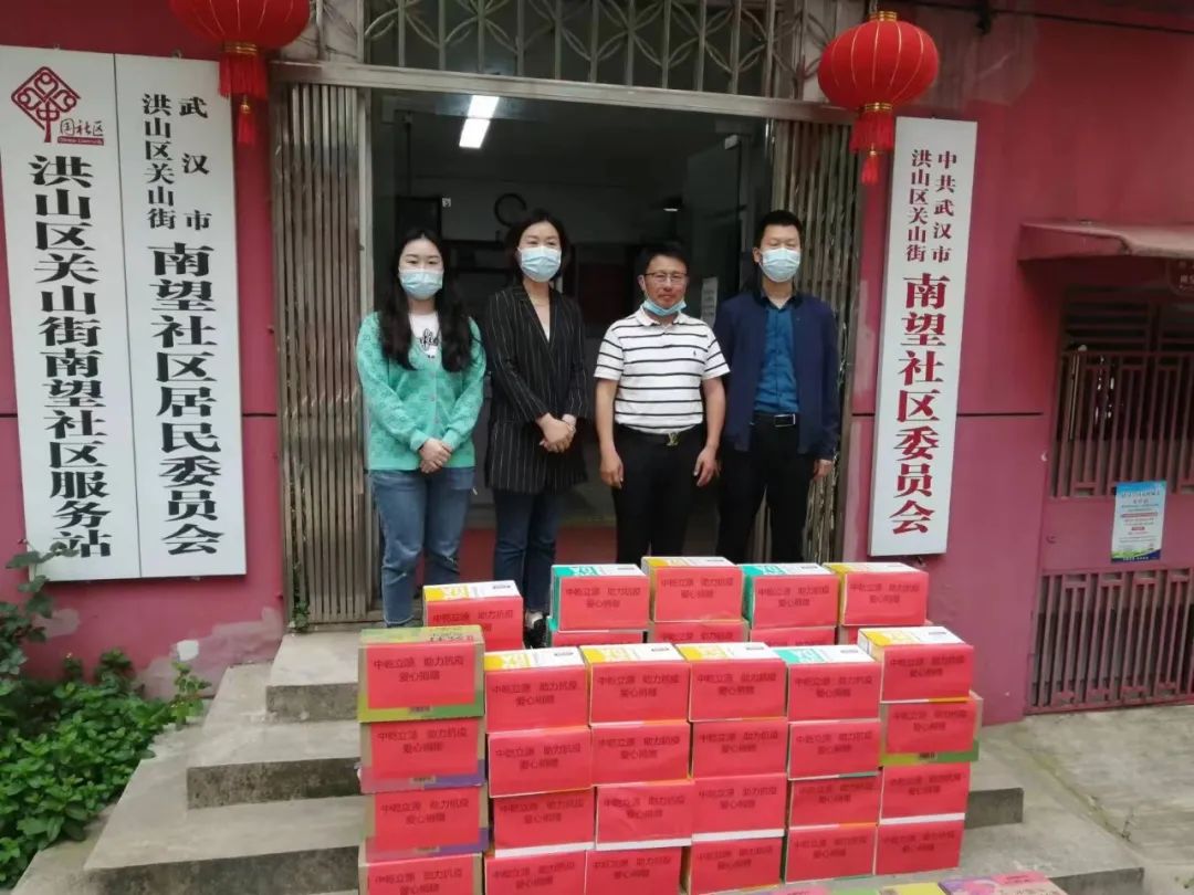 (中乾立源董事長巫世峰,中乾立源黨支部書記黃婧晗和關(guān)山街南望社區(qū)工作人員合影)
