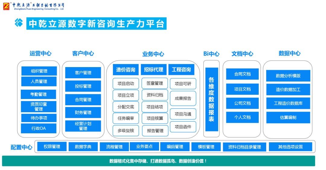 中乾立源正式上線使用的全過程工程咨詢數(shù)字化平臺是 “企業(yè)級”多項目版工程全過程數(shù)字化業(yè)務(wù)平臺。該平臺集數(shù)字化轉(zhuǎn)型、工程全過程管理與咨詢,以及全過程BIM創(chuàng)新應(yīng)用于一身,是工程建設(shè)領(lǐng)域業(yè)務(wù)數(shù)字化的必備工具。通過“數(shù)字全咨”為公司進(jìn)行數(shù)字賦能、降本增效、提升全咨企業(yè)的核心競爭力;與此同時,也給業(yè)主提供了規(guī)范的、精細(xì)的、高質(zhì)量的工程咨詢服務(wù)。