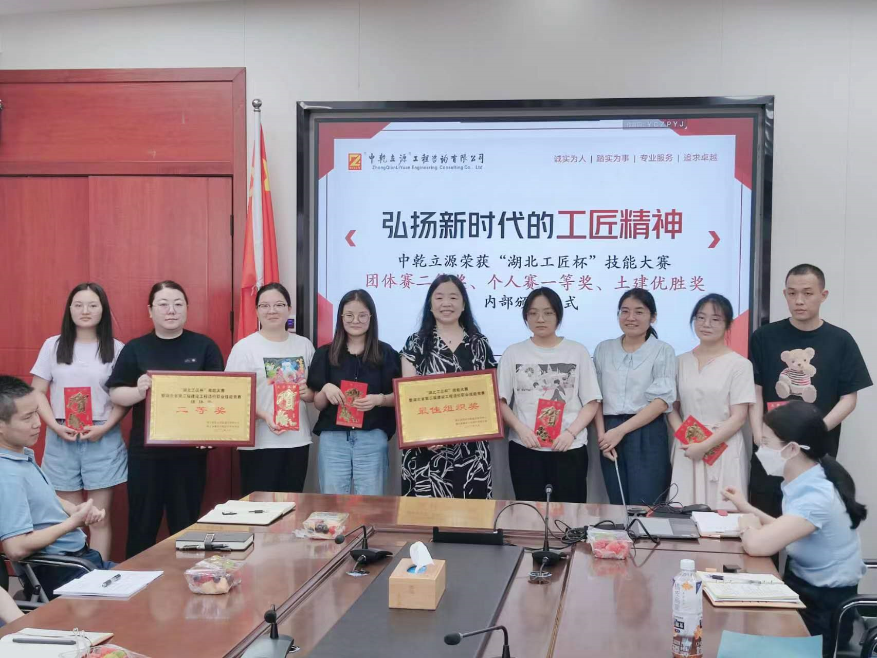 8月19日,中乾立源進(jìn)行內(nèi)部頒獎(jiǎng)儀式,董事長巫世峰、總經(jīng)理夏麗波對參賽員工表示祝賀,并頒發(fā)榮譽(yù)證書及獎(jiǎng)金。