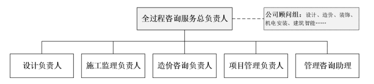高效精干:全過程工程咨詢組織機構(gòu)的設(shè)置采用扁平化管理,根據(jù)全過程咨詢管理工作的需要,前場、后場(專職、兼職)人員互補,形成工作高效,人員精干,專業(yè)綜合的有機整合的團隊。