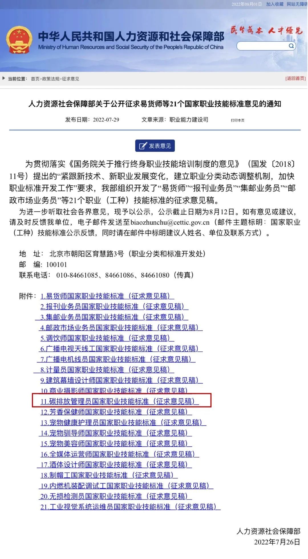 去年,人力資源社會保障部發(fā)布了《碳排放管理員國家職業(yè)技能標準》(征求意見稿),就標準進行公開征求意見。這成為了我國碳排放管理員職業(yè)能力建設工作的一個重要里程碑,將對我國碳達峰碳中和專業(yè)人才培養(yǎng)工作起到積極推動作用。