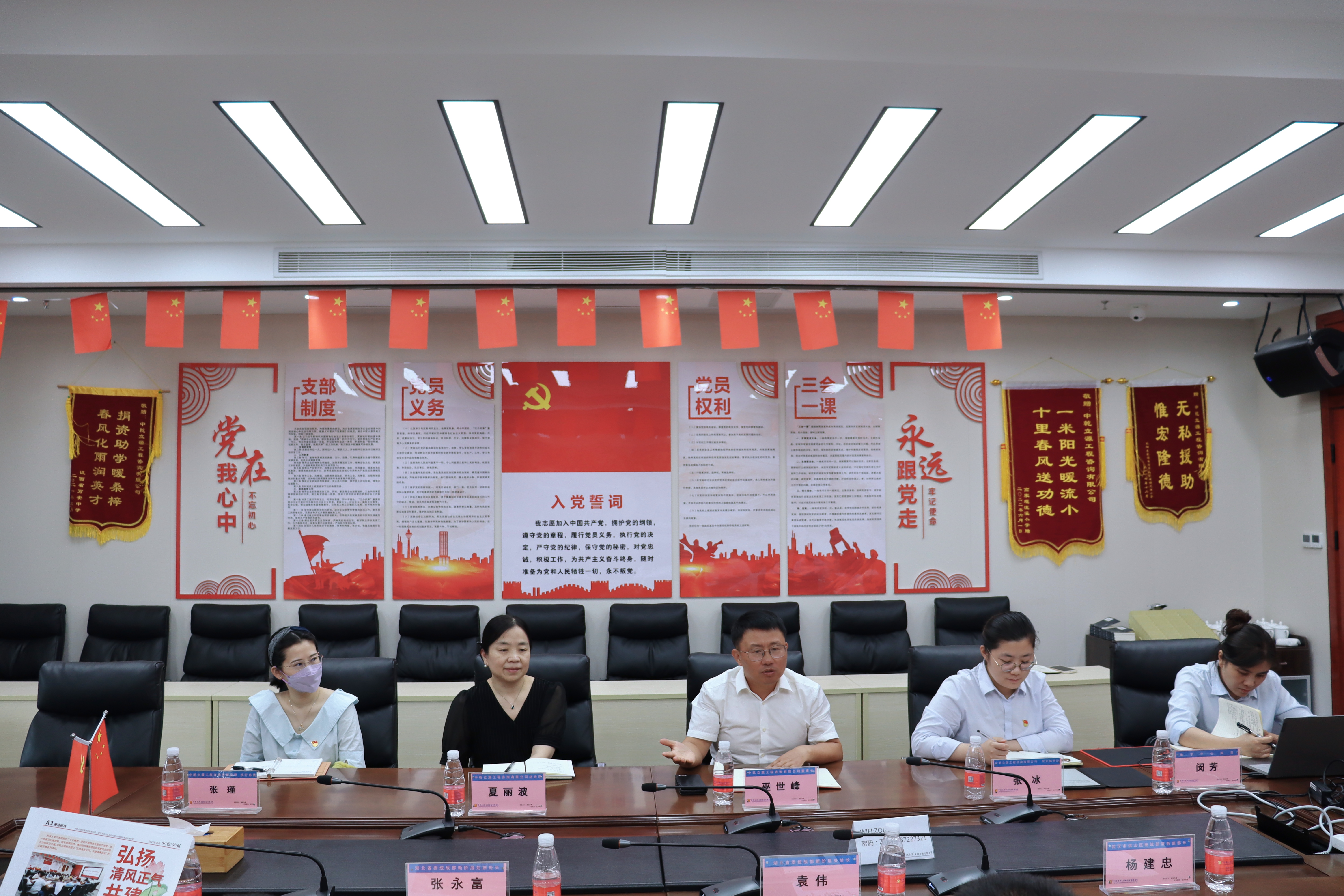 湖北省委統(tǒng)戰(zhàn)部新階層處副處長張永富、湖北省委統(tǒng)戰(zhàn)部新階層處二級調(diào)研員李靜、總經(jīng)理夏麗波、執(zhí)行總裁張瑾、辦公室主任閔芳等參加會議。