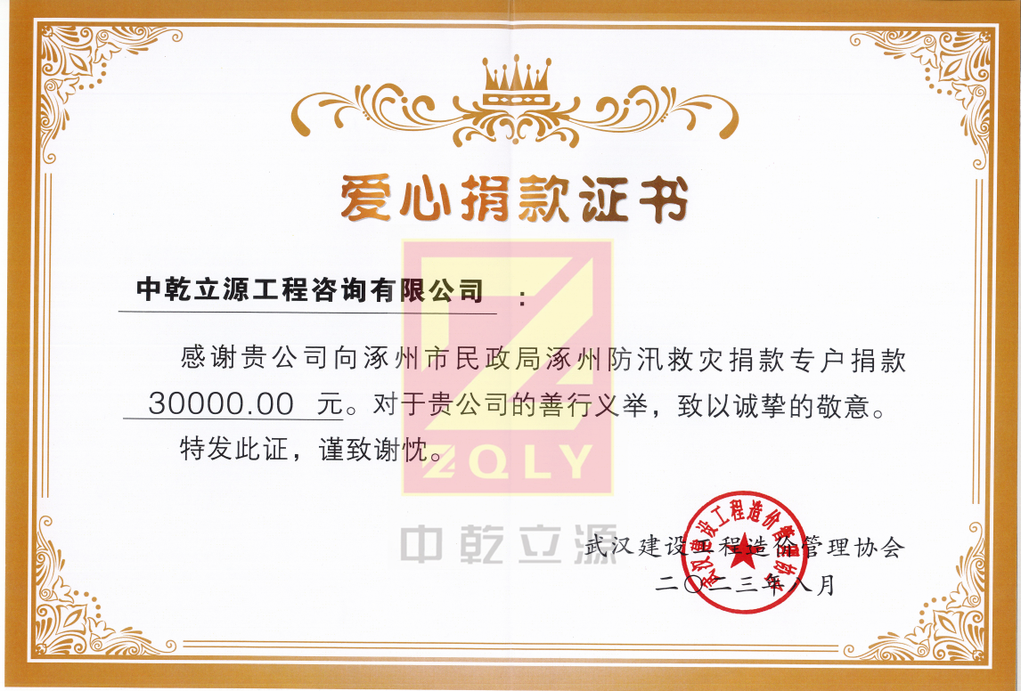 【2023】“河北涿州防汛救災(zāi)”愛心捐款證書