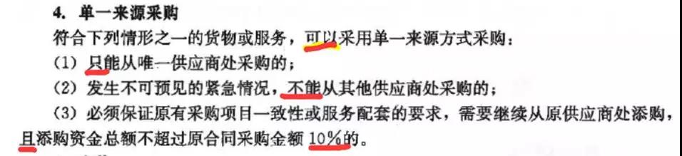 這個(gè)第三點(diǎn)就是一個(gè)很好的套路選項(xiàng),可以編制成“單一來源采購必須保證原有采購項(xiàng)目一致性或服務(wù)配套要求,需要繼續(xù)從原供應(yīng)商處添購,或添購自己總額不超過原合同采購金額10%”。這個(gè)選項(xiàng),你記住10%了,但是“且”變“或”還是會(huì)讓你失分。但是你要是有了這個(gè)出題思維,就不會(huì)在這個(gè)地方出錯(cuò)。
