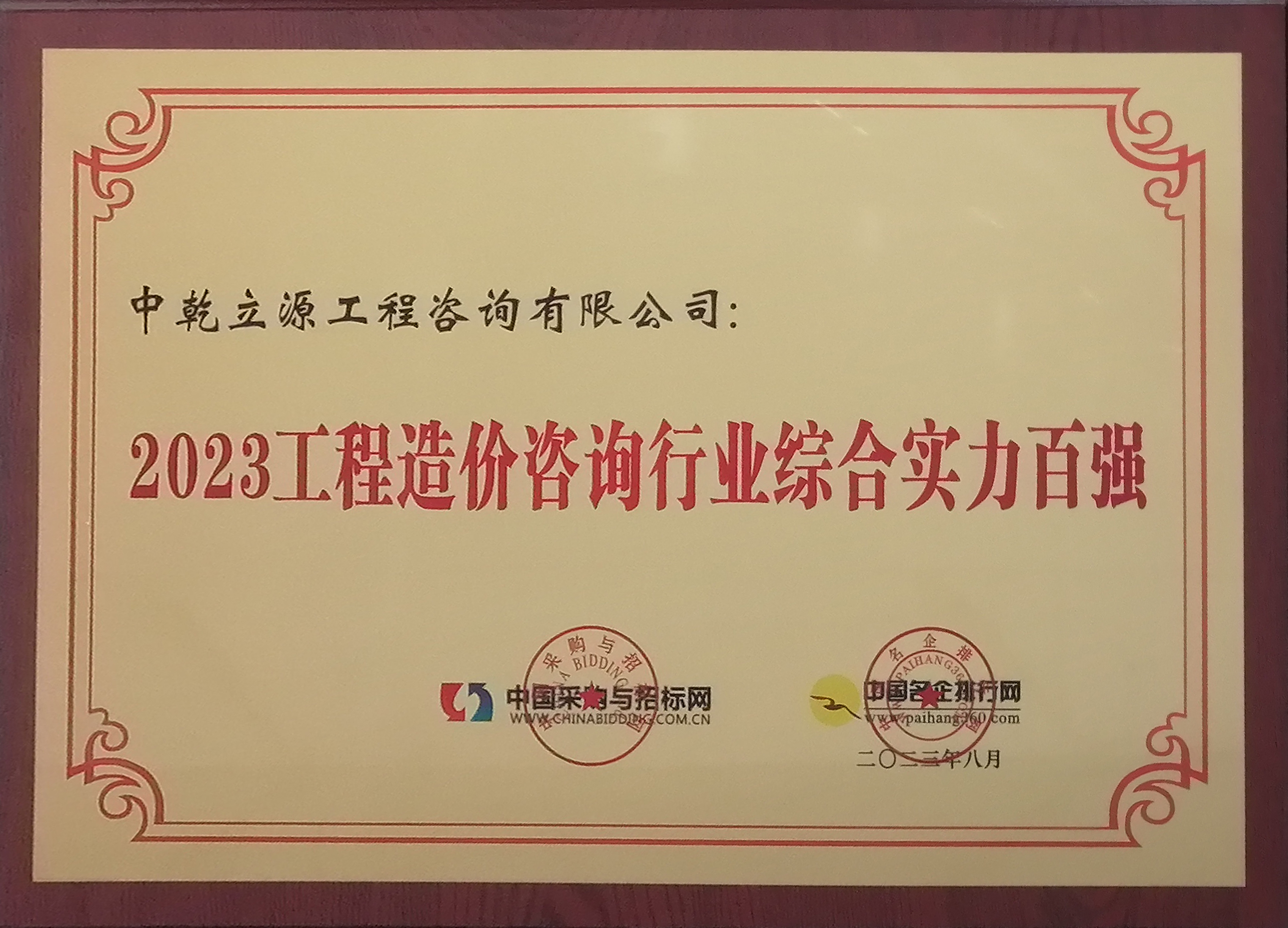 2024年伊始,中乾立源喜報(bào)不斷,斬獲多項(xiàng)榮譽(yù),在最近發(fā)布的湖北省工程造價(jià)咨詢企業(yè)品牌100強(qiáng)榜單中,中乾立源排名第四。且獲得2023年工程造價(jià)咨詢行業(yè)綜合實(shí)力百?gòu)?qiáng),2023年招標(biāo)代理行業(yè)綜合實(shí)力百?gòu)?qiáng)榮譽(yù)。