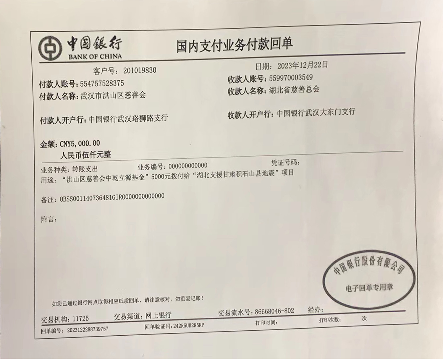 2023年12月22日,中乾立源通過洪山慈善會中乾立源基金向甘肅地震災(zāi)區(qū)捐贈善款。