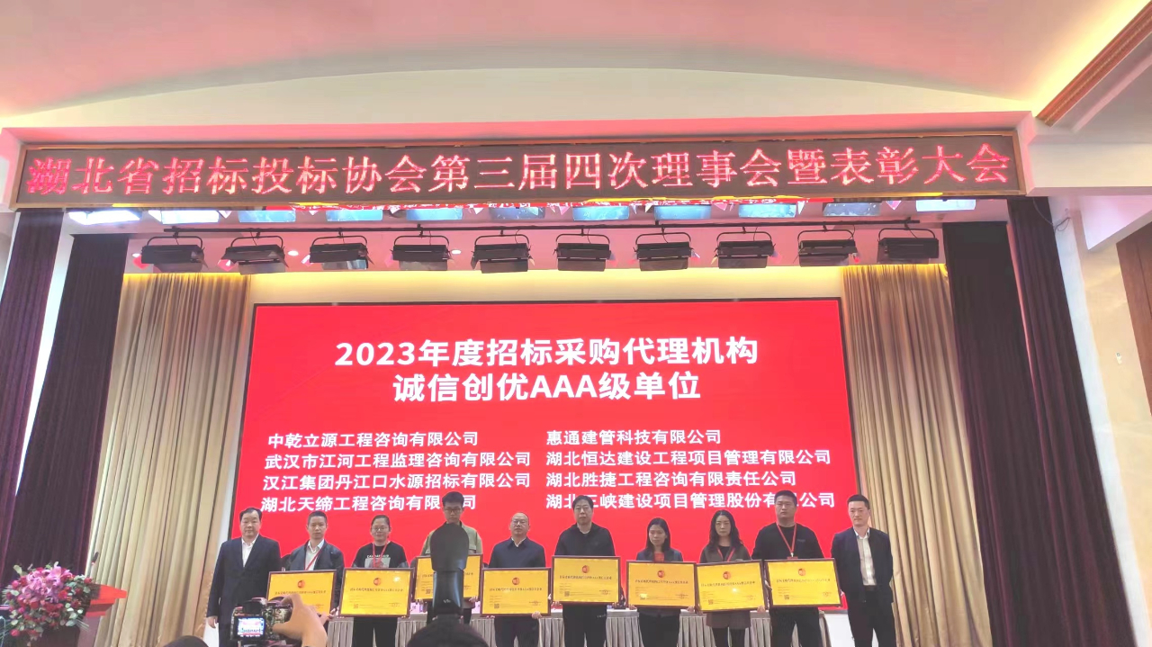 近日,湖北省招標投標協(xié)會發(fā)布“2023年度湖北省招標采購代理機構誠信創(chuàng)優(yōu)評級結果”。中乾立源榮獲“2023年度湖北省招標采購代理機構誠信創(chuàng)優(yōu)等級AAA”稱號。董事長巫世峰榮獲“2023年度湖北省招標先進個人”稱號。