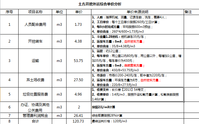 以上所有價(jià)格因素的調(diào)研,應(yīng)達(dá)到在沒有招標(biāo)的情況下,可以直接進(jìn)行組價(jià),組出土方主要項(xiàng)目的綜合單價(jià),示例如下: