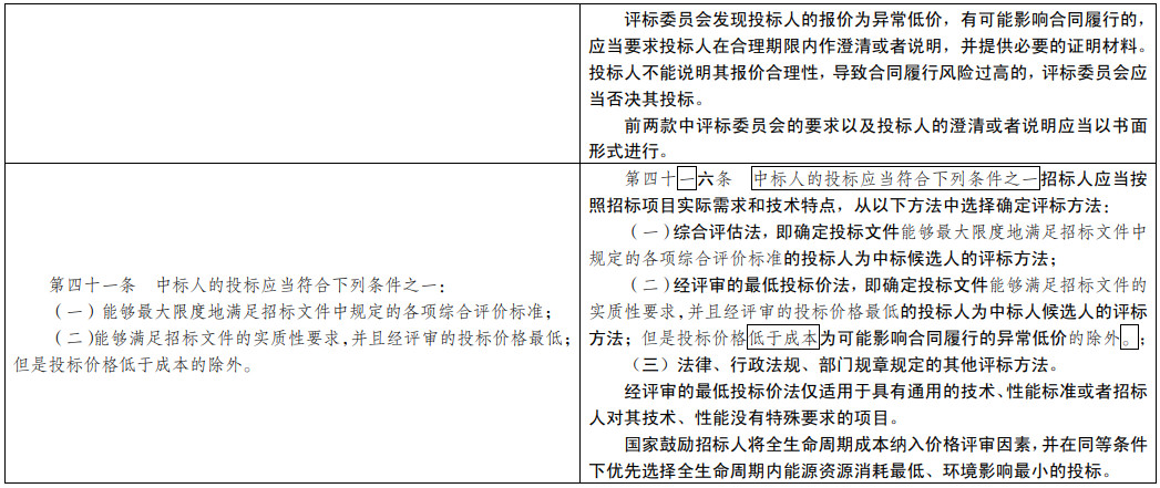 (五)解決低質(zhì)低價(jià)中標(biāo)問題。嚴(yán)格限定經(jīng)評(píng)審的最低投標(biāo)價(jià)法的適用范圍。在評(píng)標(biāo)環(huán)節(jié)引入異常低價(jià)投標(biāo)處理程序,有效管控合同履行風(fēng)險(xiǎn)。鼓勵(lì)在價(jià)格評(píng)審因素中引入全生命周期成本理念。