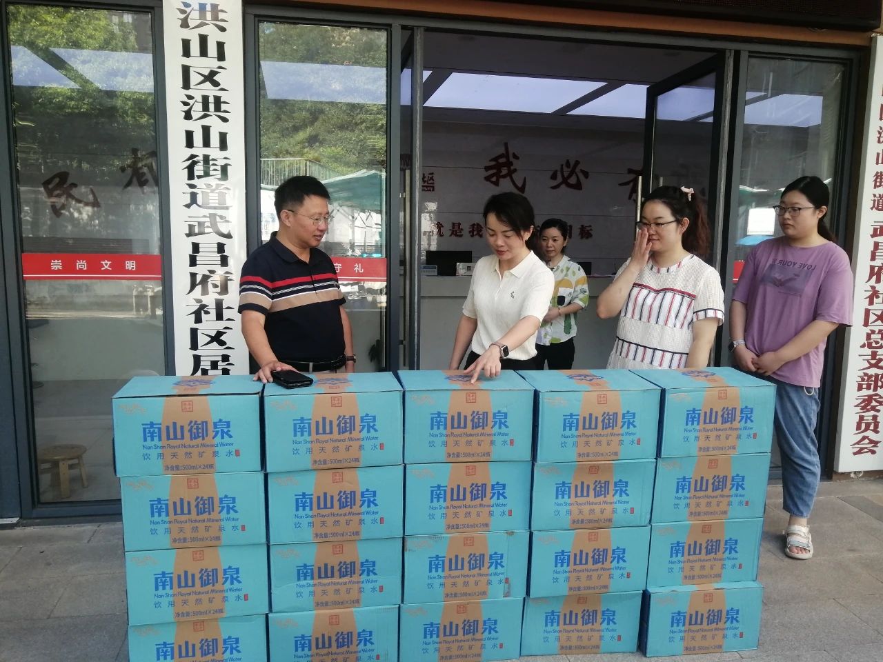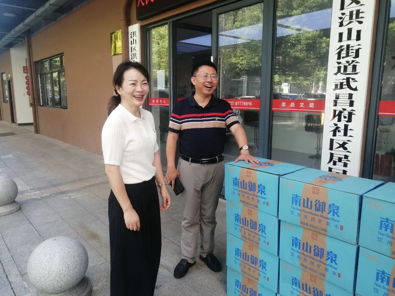 持續(xù)晴熱的高溫,熱浪滾滾,給一線的社區(qū)工作者帶來了嚴酷“烤”驗。為感謝社區(qū)工作人員在高溫下的默默堅守和辛苦付出,7月31日上午,省、市、區(qū)三級政協(xié)委員,民建會員、武漢建設(shè)工程造價管理協(xié)會會長、中乾立源董事長巫世峰、中乾立源黨支部書記張冰及黨員代表一行,向洪山街道武昌府社區(qū)贈送一批礦泉水,為社區(qū)全體工作人員送上一片夏日清涼。
