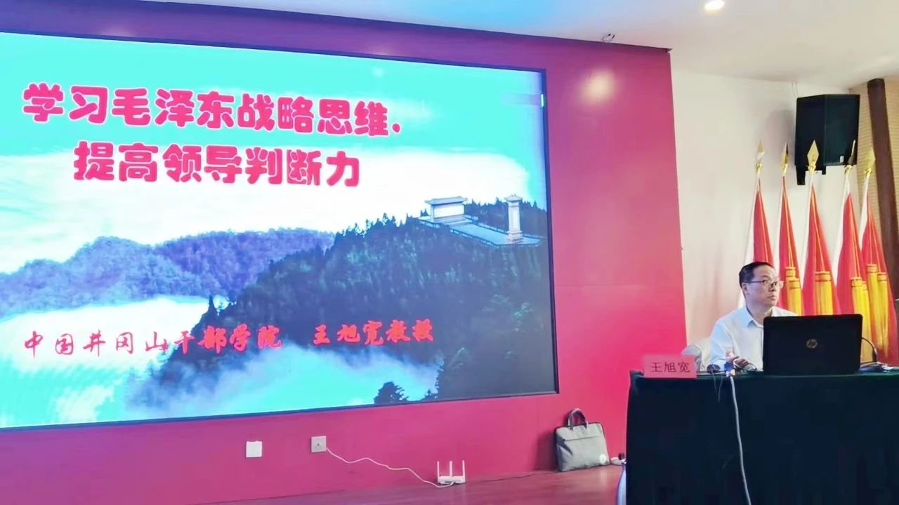 中國井岡山干部學院王旭寬教授講解了《學習毛澤東戰(zhàn)略思維,提高領導判斷力》專題黨課。帶領我們回顧毛澤東同志在中國革命戰(zhàn)爭中,尤其是在事關國家、民族前途命運的緊要關頭,高瞻遠矚,把握大勢的卓越戰(zhàn)略思維能力。