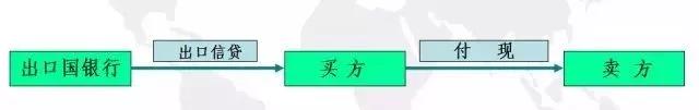 買(mǎi)方信貸有兩種形式:一種是由產(chǎn)品出口國(guó)銀行把出口信貸直接貸給買(mǎi)方,買(mǎi)賣(mài)雙方以即期現(xiàn)匯成交,其過(guò)程如圖。例如,在進(jìn)口設(shè)備材料時(shí),買(mǎi)賣(mài)雙方簽訂貿(mào)易協(xié)議后,買(mǎi)方先付15%左右的的資金,其余貸款由賣(mài)方銀行貸給,再由買(mǎi)方按現(xiàn)匯付款條件支付給賣(mài)方。此后,賣(mài)方分期向賣(mài)方銀行償還貸款本息。