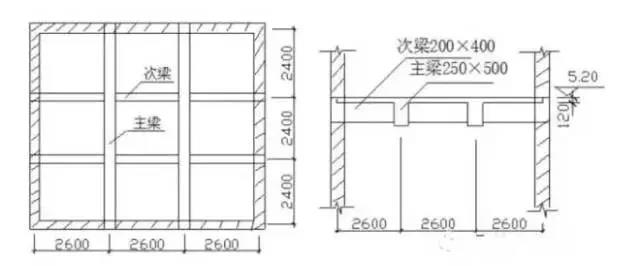 [例10-18]某現(xiàn)澆鋼筋混凝土有梁板,如圖所示,膠合板模板,鋼支撐,計算有梁板模板工程量,確定定額項目。