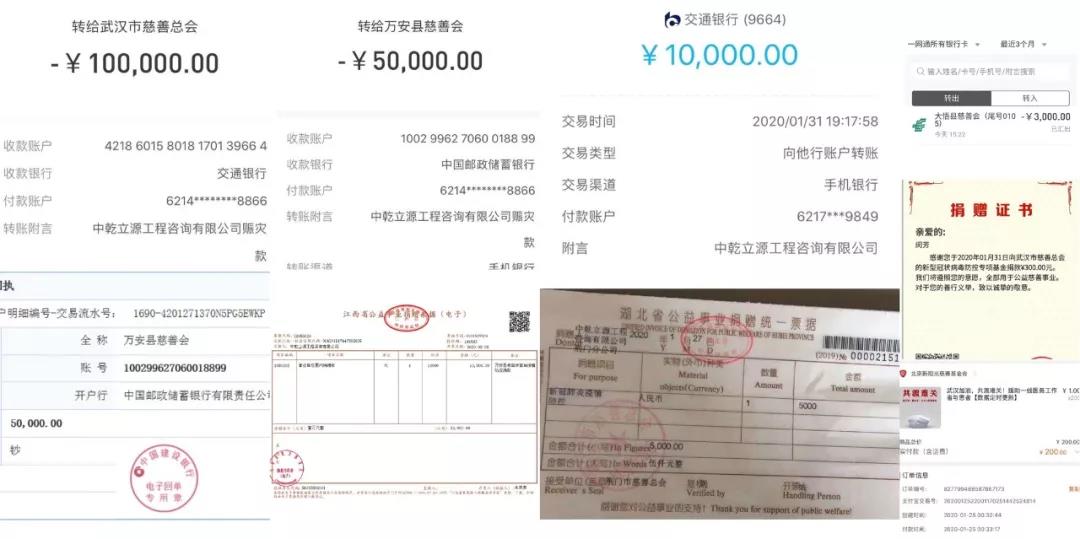 截至2月8日晚6時,中乾立源共計捐贈: