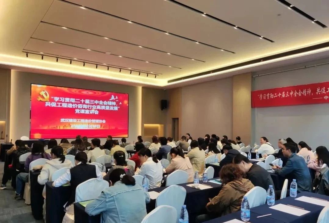 2024年10月30日上午,武漢建設工程造價管理協(xié)會功能型支部精心籌備的“學習貫徹黨的二十屆三中全會精神,共促工程造價咨詢行業(yè)高質量發(fā)展”專題黨課宣講會在江岸區(qū)凱里亞德酒店哈佛廳圓滿舉行。中乾立源黨支部積極組織黨員代表參加本次活動。