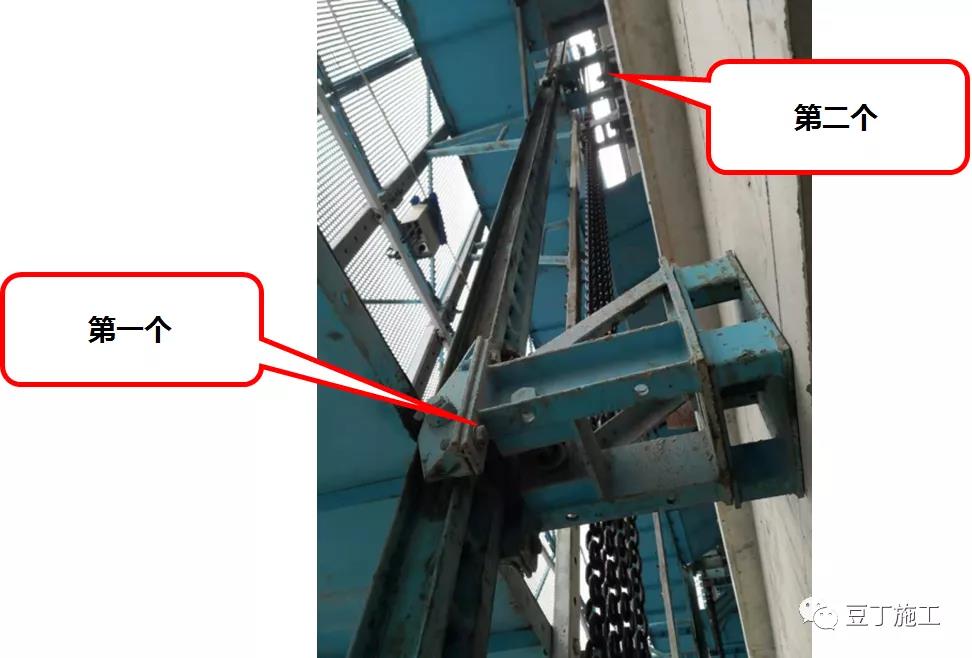爬架方案和方案交底對于升降機頂部的架體連接及加強措施均未明確,導(dǎo)致現(xiàn)場電梯頂部爬架變形,鋼管變形。